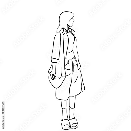 line art, illustration, vector, fashion, casual attire, oversize, woman, trendy, urban, minimalist, drawing