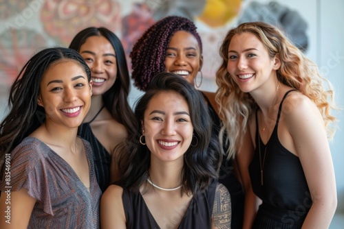 individuality, casual attire, young, woman, fashion, gathering, group, style, hair, diversity, friendship, modern, lifestyle, uniqueness, variety, casual clothes, human relationships, peer, femininity, expression, society, bonding, trendy, leisure, companionship, clothing, socialising, cheerful, together, texture, fabric, pattern, background, joy, relaxation, smile, casual clothes, interaction