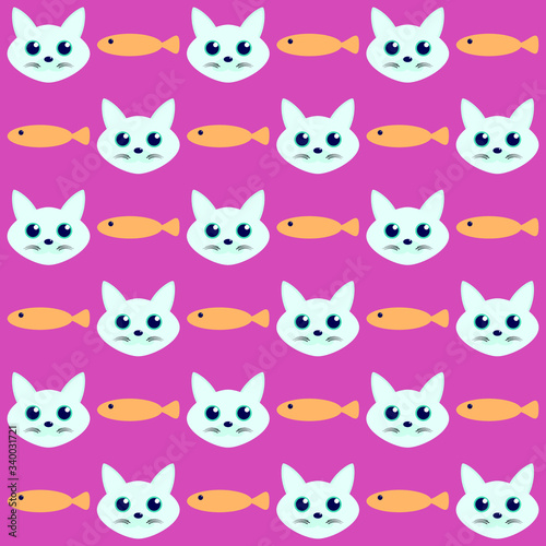 Cat and Fish Seamless Vector Pattern for Background and Set