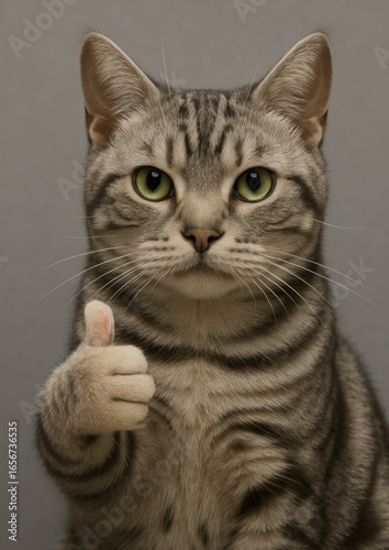 Cat giving thumbs up approval.