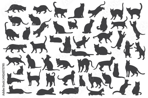 Cat silhouette set, isolated on white background. Perfect for logos, decals, apparel design.