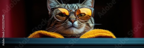 cat, sunglasses, cosy, home, relaxed, playful, warm, colours, felino, pet, indoor, fashion, cute, lounging, animal, portrait, vibrant, chill, accessory, personality, style, paw, eye, comfort, window, leisure, content, tabby, trendy, companion, soft, light, lifestyle, serene, humorous, fun, relaxation, scene, expressed, eyewear, accessory, sunny, day, generative, ai