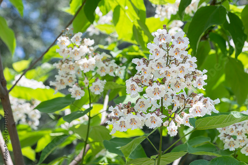 Catalpa bignonioides flowers, also known as southern catalpa, cigartree, and Indian-bean-tree.