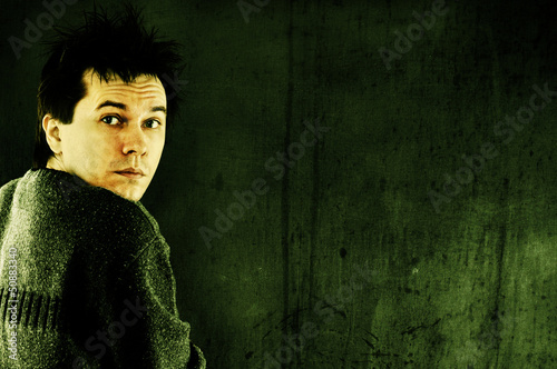 man, male, photogenic, portrait, face, emotion, emotional, look, looking, stare, adult, posing, studio, head, closeup, eye, caucasian, white, catch, grey, sweater, pose, single, person, casual attire, dark