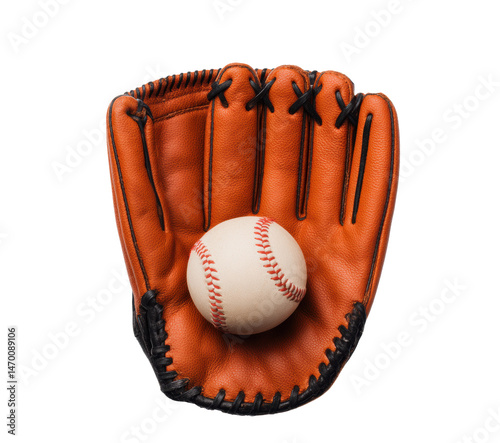 Catching a baseball with a glove during practice on a transparent background, cut out