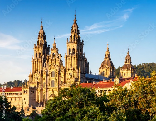 cathedral, architecture, stone, tower, dome, morning, light, spain, europa, travel, history, religious, exterior, city, facades, building, gothic, detail, ancient, sunrise, landscape, european, tour tourism, landmark, majestic, structure, sky, tree, city landscape