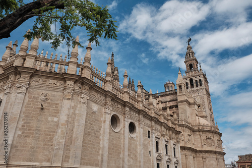 Cathedral of Saint Mary of the See (Seville Cathedral) in Seville, Andalusia, Spain in a sunny and cloudy day.