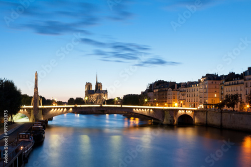 cathedral, paris, seine, sunset, bridge, river, city, night, architecture, building, water, travel, panorama, landscape, illuminated, france, europa