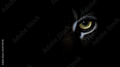 Cat's eye gleaming in darkness, close-up, night, wildlife, mystery, banner