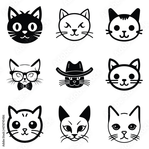 black, pet, animal, isolated, cat, cute, face, illustration, vector, funny, felino, cartoon, kitten, portrait, set, goggles, fashion, background, cat, hipster, hat, domestic, white, holiday, happy, adorable, meow, style, fur, mammal, head, design, drawing, breed, graphic, siamese, brown, beautiful, fluffy, siamese cat, character, silhouette, sweet, collection, icon, print, comic, doodle, smile