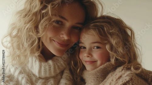 caucasian, female, adult, children, smiling, cosy, sweater, blond, curly, hair, family, love, warmth, portrait, togetherness, bonding, happiness, closeup, autumn, wool, knitwear, mother, daughter, affection, joyful, gentle, tender, human relationships, hugs, intimate, blond, freckle, serene, comfort, candid, sweater, warm, closeness, homely, caring, feminine, maternal, peaceful, connection, relaxed, cheerful, endearing