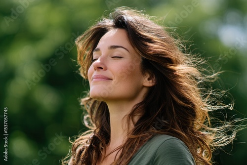 female, young, caucasian, outdoors, relaxing, peaceful, serene, nature, sunlight, smile, happiness, calmness, wind, hair, green, tree, fresh, summer, leisure, confident, calm, joyful, breeze, natural, harmony, carefree, content, face, lifestyle, beauty, wellness, vitality, daydreaming, mindfulness, rejuvenating, freedom, glow, blissful, positive, energy, cheerful, radiant, breathing, environment