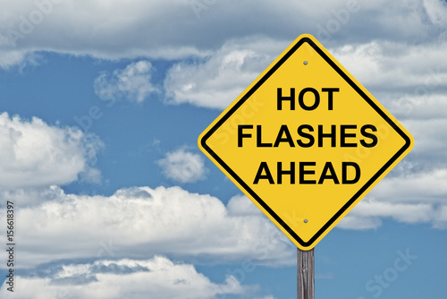 menopause, woman, hot, female, old, adult, mature, flush, health, lifestyle, woman, medicals, mid-life, aged, age, flash, signs, roadsign, caution, warning, symbol, warning sign, concept, idea, information, yellow, blue, sky background