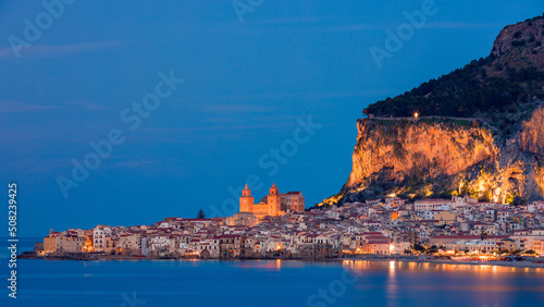 Cefalu, medieval city of Sicily island, Province of Palermo, Italy. Cefalu is city in Italian Metropolitan City of Palermo located on Tyrrhenian coast of Sicily, Italy.