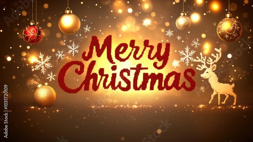 Celebrate the Joy of Christmas: Captivating Cross-Stitched Message in a Warm, Festive Atmosphere with Glittering Ornaments and Snowflakes