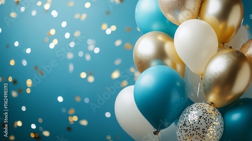 celebration, background, blue, gold, white, balloon, confetti, christmas, copy