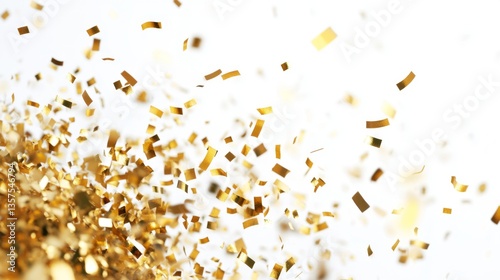 Celebration of life sparkling gold confetti explosion festive event studio setting joyful atmosphere close-up perspective