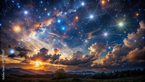 misty, cloud, celestial, canvas, star, night, sky, orion, taurus, gemini, silhouette, majesty, darkness, galaxy, astronomy, universe, cosmos, twinkling, shining, sparkling, celestial bodies, space, heavenly, majestic, sublime, aethereal, mystical, vague, ominous, haunting, eerie, surreal, dreamlike, fantastical, magical, dark, mysterious, foggy, cloudy, gloomy, atmospheric