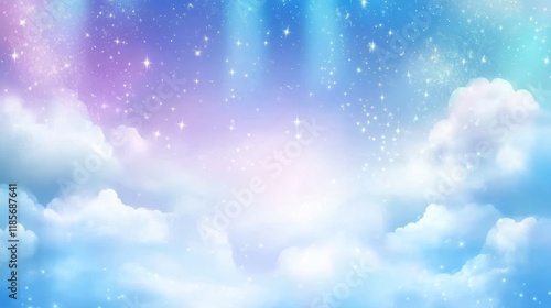Celestial Dreamscape: A dreamy, ethereal background with soft clouds, twinkling stars, and radiant light beams, perfect for evoking feelings of wonder, serenity, and hope.