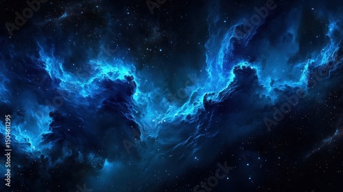 Celestial Nebula Deep Blue Cosmic Cloudscape