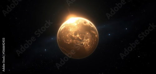 Celestial orb dominates inky black canvas, ethereal glow, soft light , night sky, artwork
