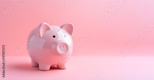Ceramic Piggy Bank in Pink Background With Copy Space: AI Generated Image