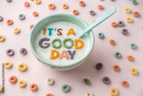 cereal, bowl, milk, breakfast, food, colourful, letter, spoon, pink, table, morning, healthy, nourishment, diet, delicious, sweet, snack, meal, children, fun, vibrant, bright, cheerful, positive, message, typography, still life, studio, shot, nobody, indoor, deliciously, isolated, transparent, background