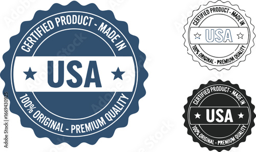 certified, product, made, us, original, premium, quality, seal, sticker, label, badge, guarantee, assurance, vector, icon, symbol, round, design, illustration, tags, business, best, choice, signs, mark, graphic, stamp, isolated, decoration, certificate, emblem, guarantee, authentic, blue, black, white