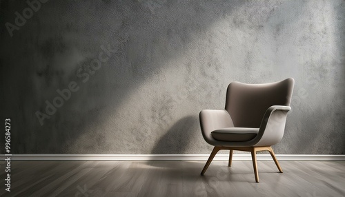 Chair in empty room against concrete gray wall. Modern minimalist studio mockup. Luxury space for premium presentations. chair in the dark room