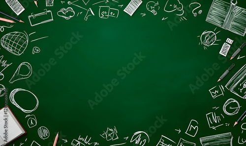Chalkboard filled with imaginative hand-drawn doodles, showcasing a vibrant blend of creativity and playful expression, inviting exploration and inspiration.