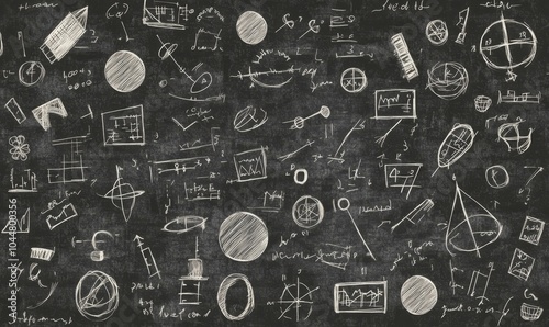 blackboard, drawing, mathematic, circle, line, shape, geometry, doodle, school, classroom, education, lesson, abstract, pattern, scribble, science, black, white, texture, messy, random, cognition, learning, study, handwritten, design, art