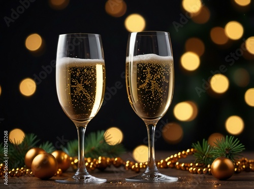 champaign, christmas, glasses, wine, celebration, drink, alcohol, holiday, new, party, year, decoration, gold, beverage, eve, gift, 2, festive, christmas, celebrate, anniversary, goggles, object, ball, gold