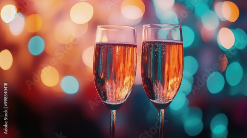 Champagne glasses against a festive backdrop
