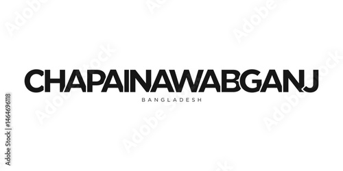 Chapainawabganj in the Bangladesh emblem. The design features a geometric style, vector illustration with bold typography in a modern font. The graphic slogan lettering.