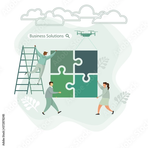 Character business team flat puzzle concept design. Business flat template. Flat character design. Isolated flat symbol. Abstract concept graphic element. Teamwork different races people concept