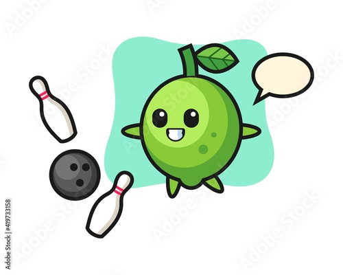 Character cartoon of lime is playing bowling