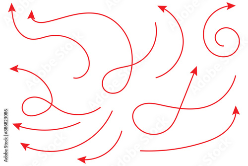 Charcoal hand drawn pencil arrows. Doodle curved chalk darts. Texture design elements of scribble lines. Vector illustration of hand painted crayon check lines.