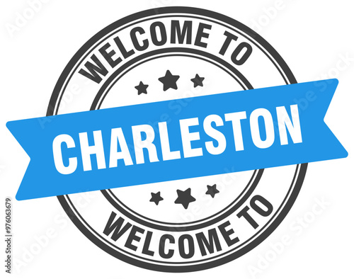 charleston, welcome, signs, stamp, blue, background, badge, band, banner, circle, greeting, holiday, holiday maker, hospitality, insignia, isolated, label, overlay, ribbon, round, seal, see through, sticker, tags, template, tour tourism, transparent, travel, vector, vignette, visit