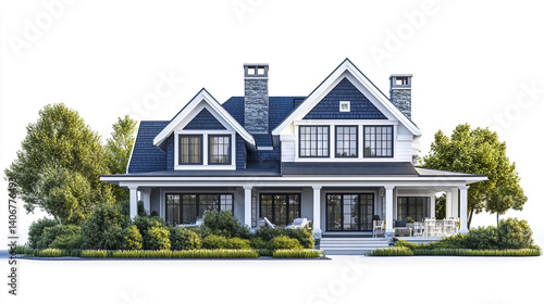 house, american, blue, siding, greenery, porch, window, tree, roof, architecture, residential, home, exterior, design, classic, traditional, front, garden, landscape, outdoors, facades, elegant, inviting, cosy, family, dwelling, structure, real estate, property, suburban