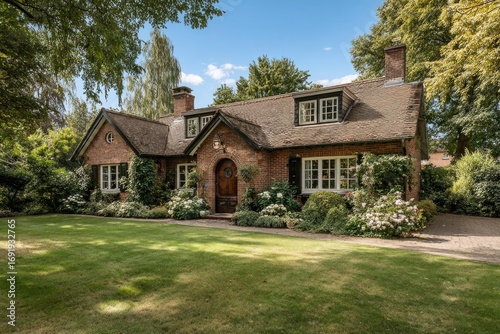 house, brick, home, garden, tree, lawn, greenery, flower, window, door, exterior, cosy, charming, property, summer, sunlight, nature, beautiful, landscaped, front, yard, residential, architecture, bungalow, traditional, peaceful, inviting, comfort, spring, autumn, foliage, detail, front view, craftsmanship, homelike, rustic, classic, elegant, well-kept, secure