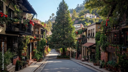 street, town, holiday, christmas, decoration, house, building, tree, cobbled, path, row house, cosy, warm, light, sunny, green, red, brown, beige, decor, holiday spirit, christmas lights, village, europa, mediterranean, vacation, travel, tour tourism, architecture, photo, view, exterior, city, landscape, charming, holiday season, street scene, small town, historic, beautiful, traditional, tourist destination, winter