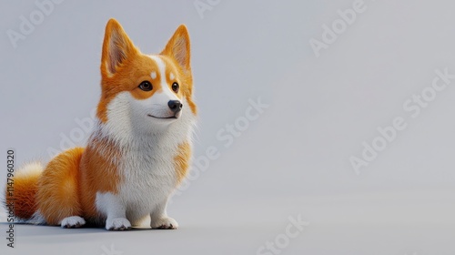 Charming Corgi Sitting Gracefully on Neutral Background