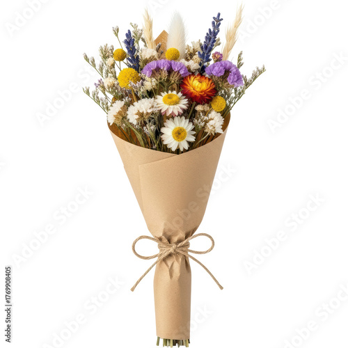 Charming dried flower bouquet featuring daisies and lavender, perfect for gifting