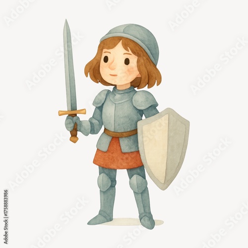 illustration, cute, minimalistic, background, watercolor, shadow, book, person, mediaeval, cartoon, fantasy, design, knight, sword, art, shield, simple, armoring, human, knife, edge, look, charming, atmosphere, character, warrior, dagger, weapon, clean, style, proportion, whimsy, sharp, isolated, dreamy, blade, arc, baby, children, suitable, weaponry, whimsical, fantasy art