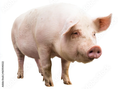 Charming Pig Standing Proudly on a Clean White Surface Radiating Playful Energy and Innocent Curiosity in a Bright and Cheerful Environment