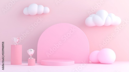 presentation, award, display, sweet, light, show, achievement, illustration, background, rendering, pink, modern, aesthetic, romantic, adorable, promotion, cute, dais, celebration, cloud, pastel, three-dimensional, minimalist, decoration, digital, design, creative, soft, art, exhibition, trophy, product, showcase