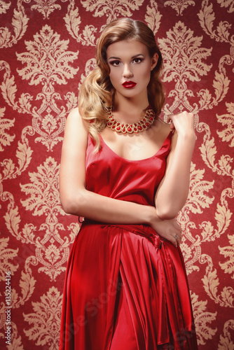 gorgeous, girl, red, dress, elegant, necklace, enchantress, evening, expensive, accessory, attractive, beautiful, beauty, caucasian, charming, chic, classic, posh, desire, diamond, face, fascinating, fashion, fashionable, female, femininity, gem, glamour, hair, coiffure, jewellery, jewellery, lady, luxurious, luxury, make-up, model, people, person, rich, ruby, sensual, sexual, sexy, style, vintage, vogue, wealth, woman, young