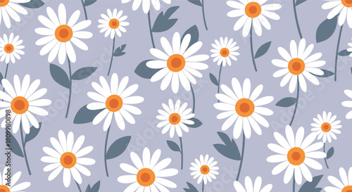 daisy, pattern, seamless, flower, floral, background, nature, vector, illustration, design, wallpaper, fabric, print, textile, texture, spring, summer, cute, simple, chamomile, white, purple, plant, botanical, garden, field, beautiful, elegant, vintage, retro, children, baby, childcare center, decor, wrapping paper, minimal, art, bloom, blossom
