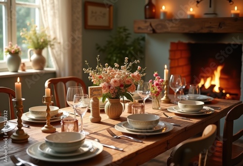plate, table, decor, arrangement, celebration, gathering, dining, centrepiece, setting, design, napkin, glasses, candle, flower, rustic, elegant, feast, holiday, theme, clothes, colours, joy, warmth, chair, food, drink, utensil, style, layout, texture, ornamentation, creativity, hospitality, occasion, visual, elegance, comfort, charme, detail, atmosphere, invite, moment, traditional, festive, cosy, family, event, dinner, lunch