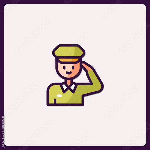 Charming vector icon featuring a saluting military officer in vibrant colors